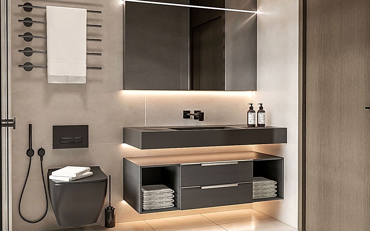 - Geniş Depolama Alanı: Havlular, kozmetik ürünler ve banyo gereçlerini düzenli bir şekilde saklamak için ideal çözümler sunar.