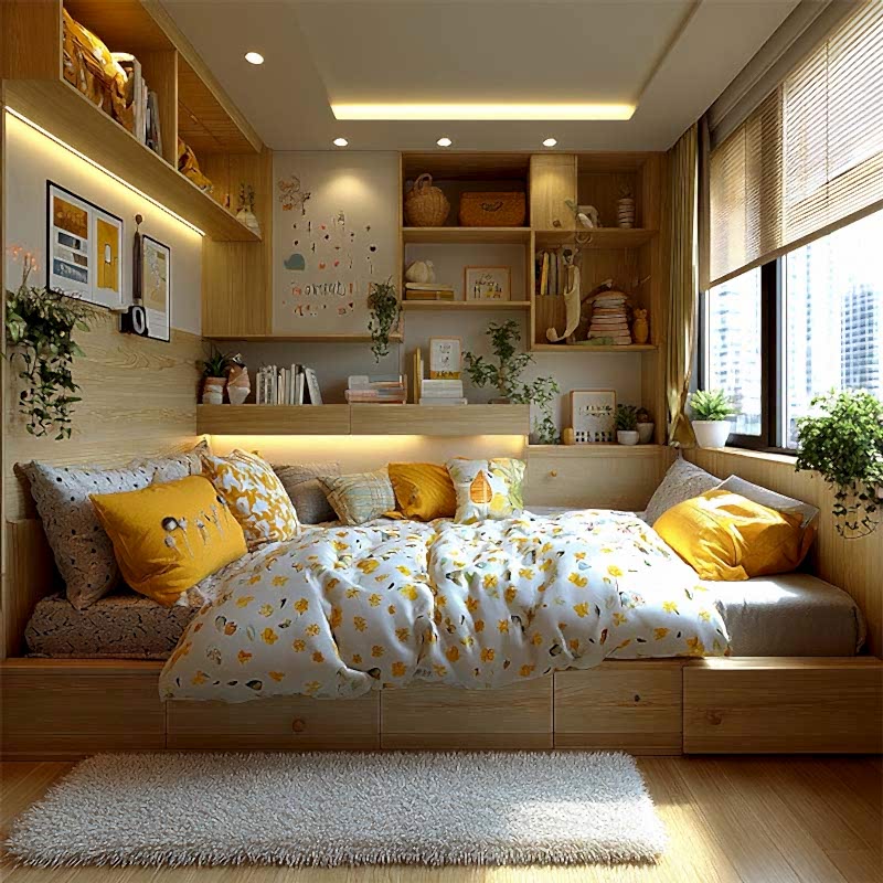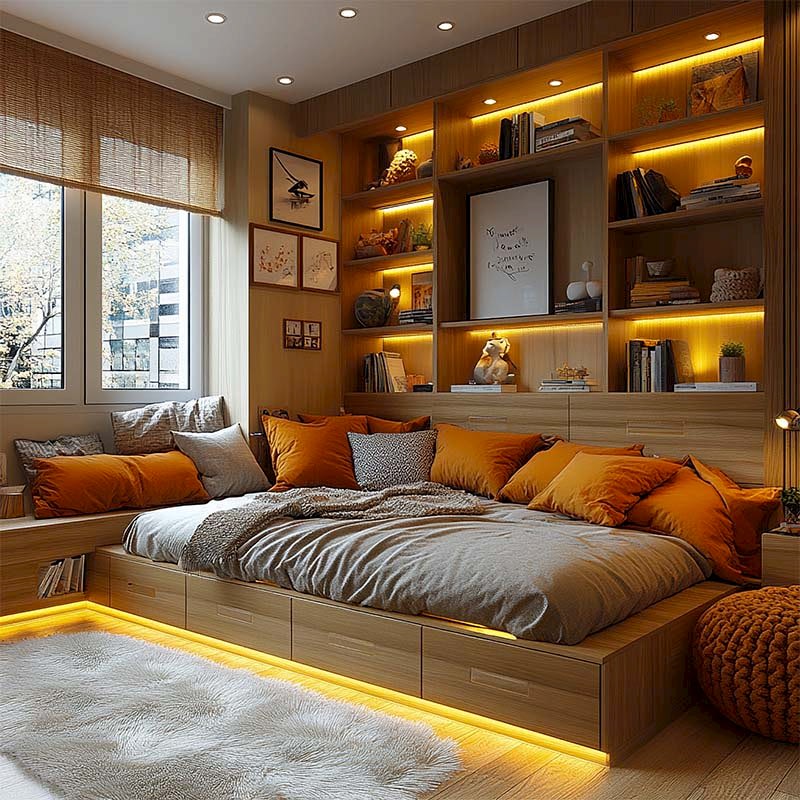 - İşlevsel Çözümler: Çalışma masaları, yataklar ve depolama üniteleriyle hem çalışma hem de dinlenme alanlarını verimli hale getirir.